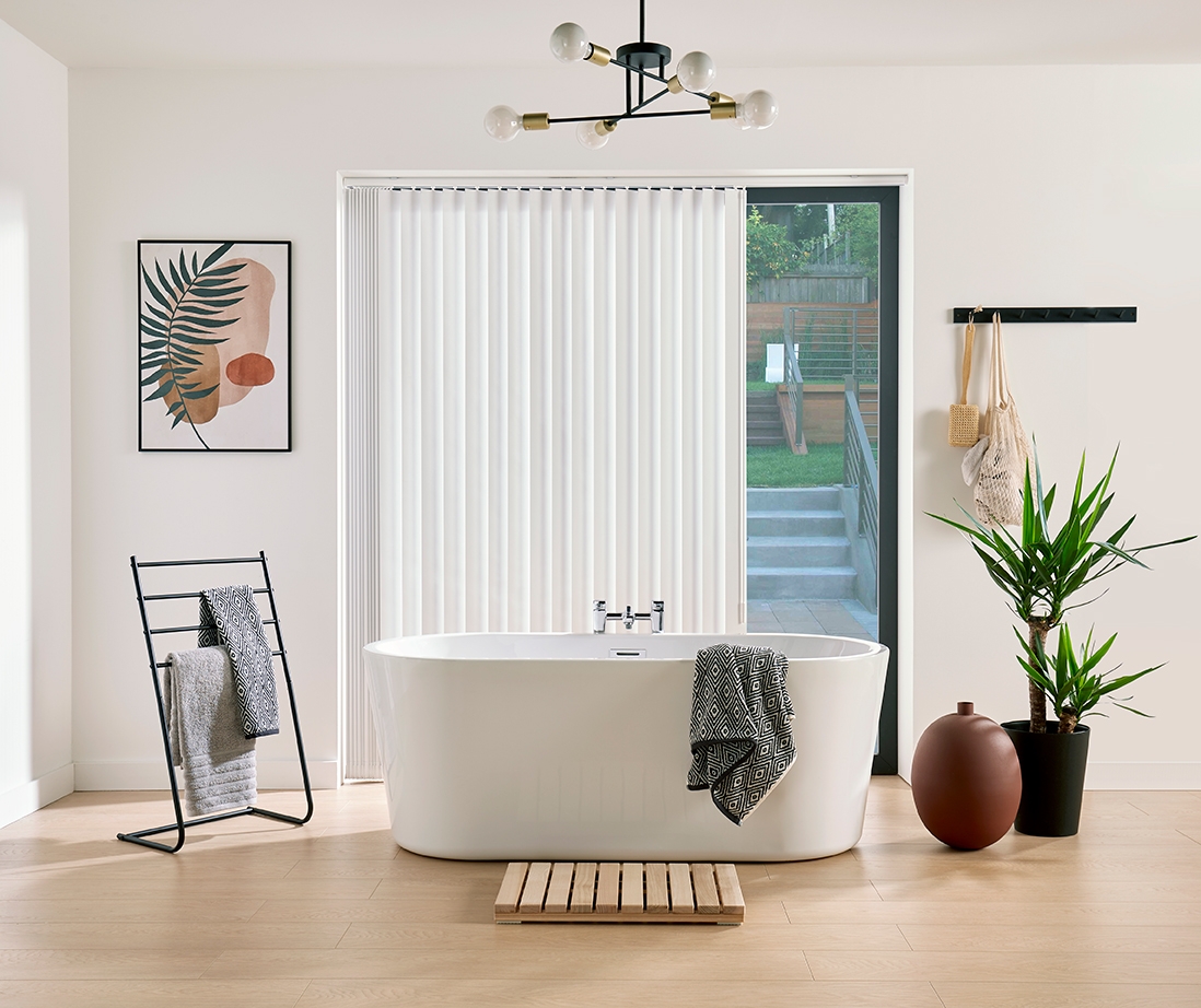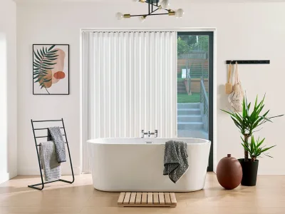 Blockout Vertical Blinds are a practical and multi-functional blind. The versality is one of it's standout features as you have full control over its light filtering and light blocking abilities. You have the choice of control side, stacking positions, chain or chainless weights, track colour and we even offer a wand control operation. Vertical Blinds with wand control are a great child safety feature. To order as wand control please select it within online ordering form. Vertical Blinds are affordable and low maintenance. Often people think of Vertical Blinds as being outdated but when done right they are stylish and elegant. They have a way of making a space look bigger and can emphasise height in the room. We have so many contemporary fabric colours available that Vertical Blinds have never looked better.